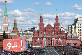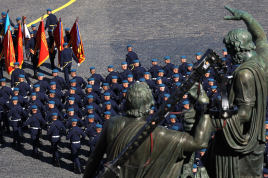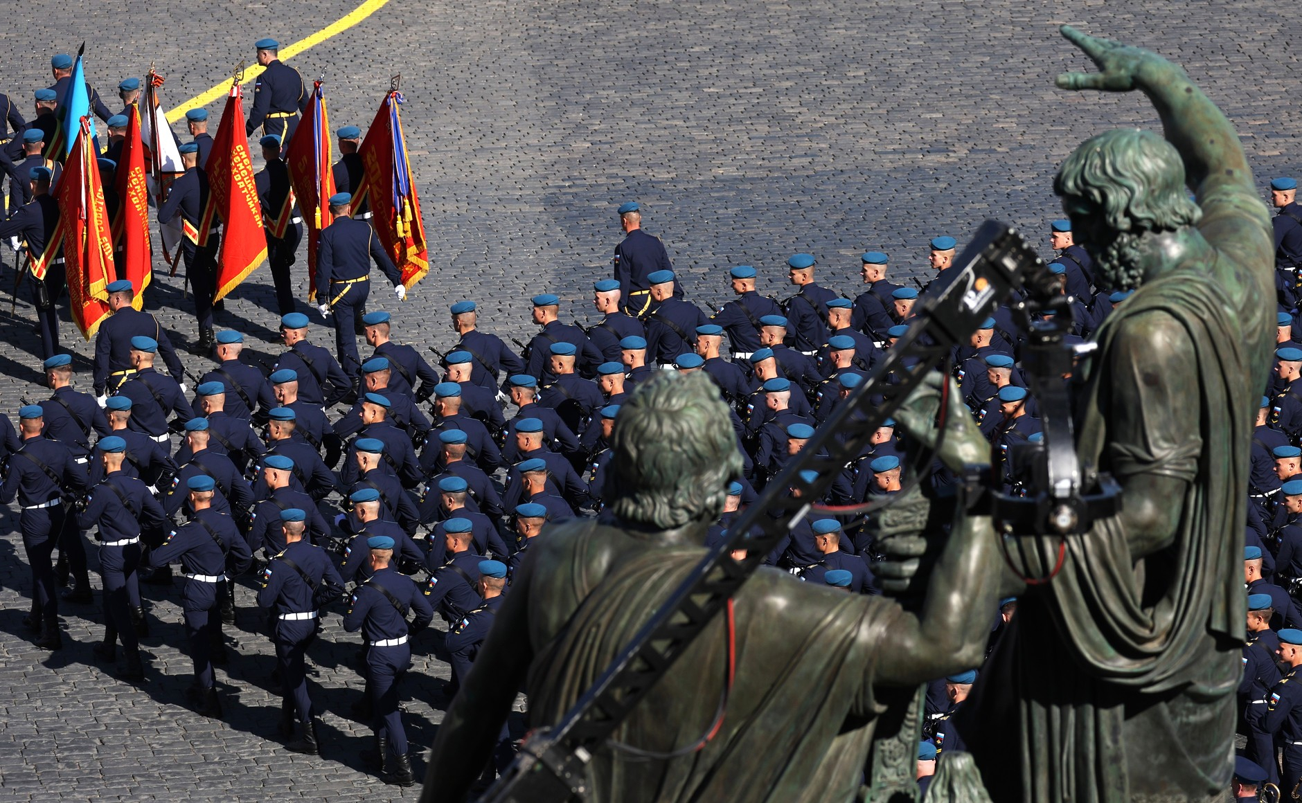 Мы с вами стоим на Красной площади, на земле, которая помнит дружинников Юрия Долгорукого и Дмитрия Донского, ополченцев Минина и Пожарского, воинов Петра Великого и Кутузова, парады 1941 и 1945 годов.