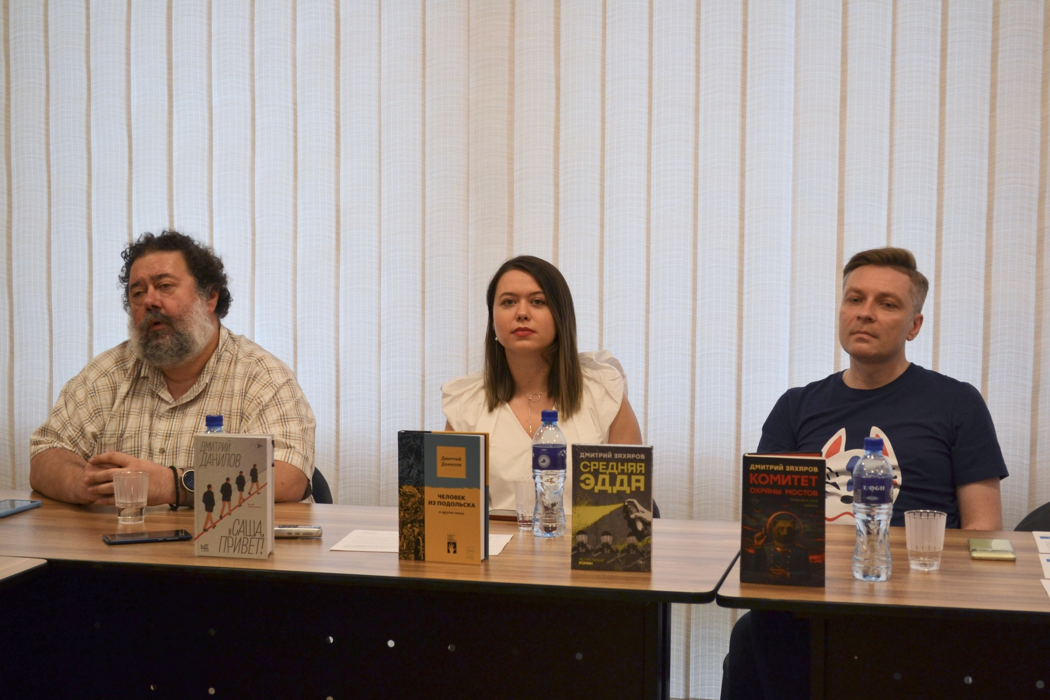 На площадке Дома Москвы в Ереване прошла также творческая встреча и обсуждение на тему «Правда и вымысел в произведениях писателей Дмитрия Захарова и Дмитрия Данилова». Ведущая мероприятия бренд-менеджер «Редакции Елены Шубиной» Татьяна Стоянова представила особенности тематики произведений и творческого почерка писателей. По ее словам, хотя оба они работают в жанре антиутопии, у Дмитрия Данилова она философская, ироничная и завораживающая в своей пугающей обыденности, тогда как произведения Дмитрия Захарова напоминают социально-политические триллеры. «Если говорить о правде и вымысле в произведениях писателей, то можно сказать, что в романах Дмитрия Данилова, в частности, в его новой книге «Саша, привет!» лишь наблюдаются фантастические допущения, между тем в центре событий произведений Дмитрия Захарова налицо сюжетообразующие элементы, связанные с другой реальностью», — отметила Татьяна Стоянова.
