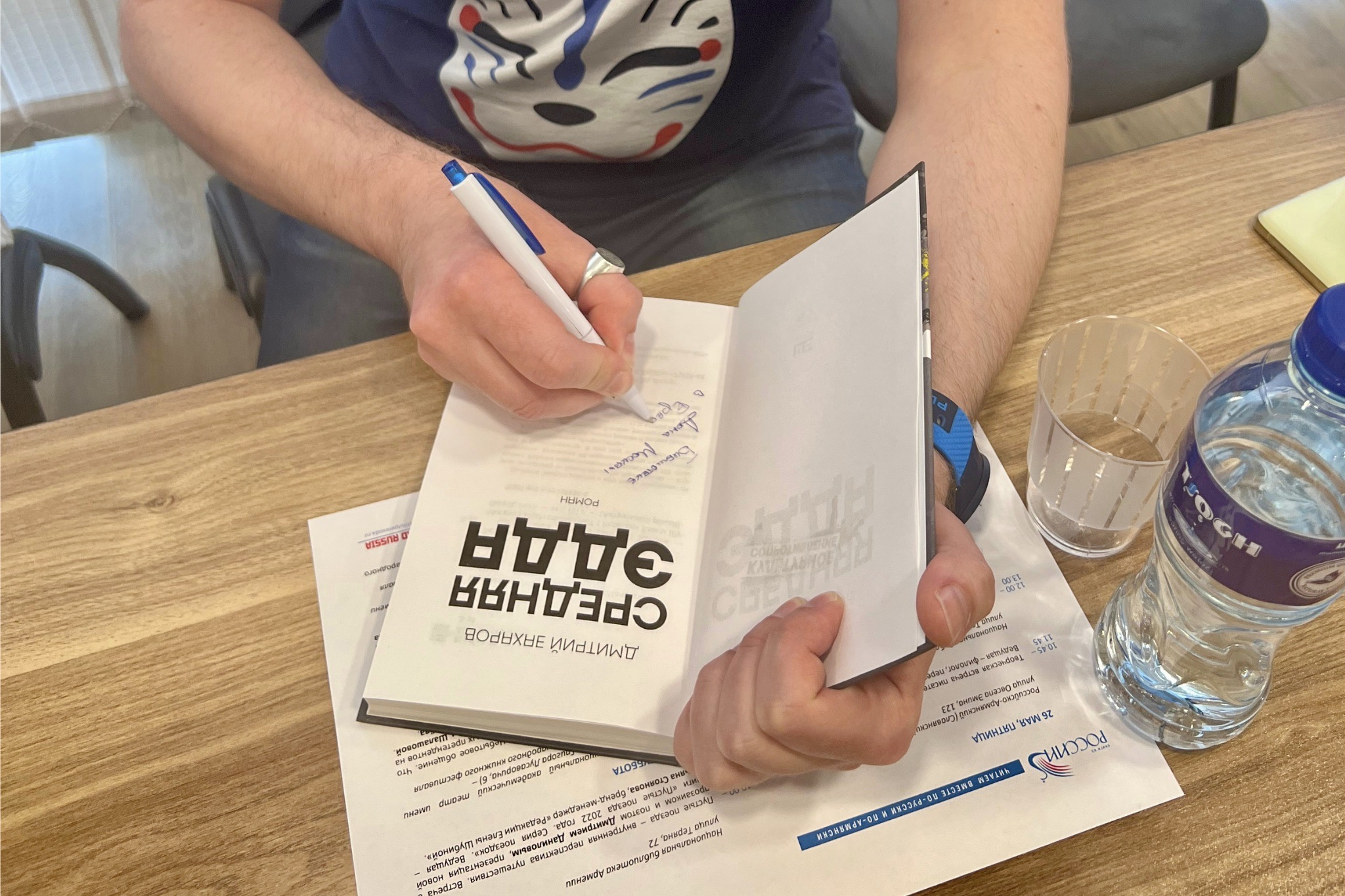 В конце встречи писатели подарили библиотеке Дома Москвы в Ереване свои книги с дарственными надписями. Поблагодарив авторов за подарок, библиотекарь Марина Гевондян подчеркнула, что подарок очень порадует посетителей, так как в Армении очень любят и с большим интересом читают современных российских писателей.