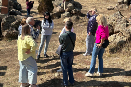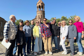На днях слушатели бесплатных курсов армянского языка для взрослых в сопровождении преподавателя Симона Петросяна посетили ряд достопримечательностей Армении. «Как только слушатели наших курсов, которые организует Московский культурно-деловой центр «Дом Москвы» в Ереване, осваивают армянский алфавит, согласно установившейся доброй традиции, я вожу их по тем знаковым местам, которые связаны с нашей письменностью и культурой», - в беседе с нами рассказал Симон Петросян, который уже многие годы преподает армянский язык и литературу в Ереванском государственном университете.