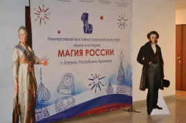 От основания Руси и реформ Екатерины Великой до современных реалий и новейшего этапа развития российско-армянских отношений. В Доме Москвы в Ереване состоялось торжественное открытие уникальной в своем роде иммерсивной выставки о русской культуре, языке и истории «Магия России». Ее посетители получили возможность увидеть 360-градусную инсталляцию об истории и культуре России, стать непосредственными участниками знаковых исторических событий России, побывать в русских сказках посредством VR-шлема, а также принять участие в мастер-классах и лекциях.