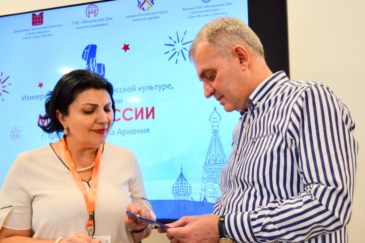 «Хотела бы с радостью отметить, что мы плодотворно сотрудничаем с Домом Москвы в Ереване и результаты этого взаимодействия действительно радуют. Мы преследуем общую цель — укрепление армяно-российских отношений, и я, как директор Ереванского филиала РЭУ имени Плеханова, очень рада, что наши студенты также стремятся внести свой вклад в это важное дело», — в беседе с нами отметила директор ЕФ РЭУ им. Плеханова Тамара Варданян.