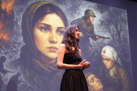 Трогательные воспоминания участников и очевидцев Великой Отечественной войны, подлинные истории, наполненные болью трагедий и при этом воспевающие отвагу советских женщин в эти суровые годы, а также стихи и песни, посвященные им, прозвучали со сцены Дома Москвы в Ереване в ходе музыкально-поэтического вечера «У войны не женское лицо», приуроченного к 80-летию Победы в Великой Отечественной войне.