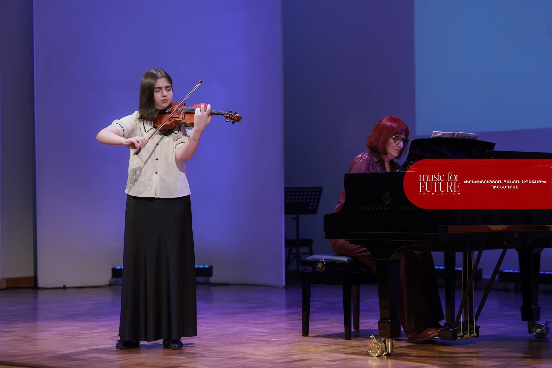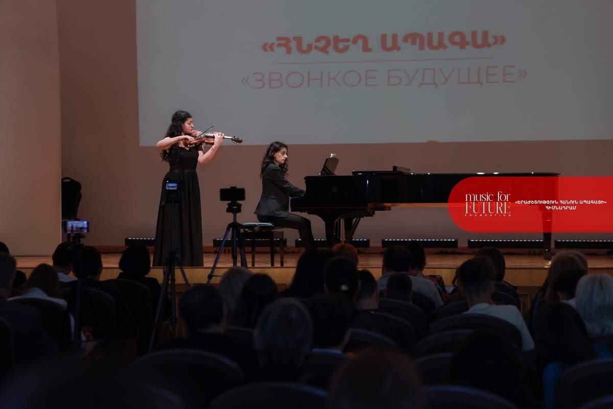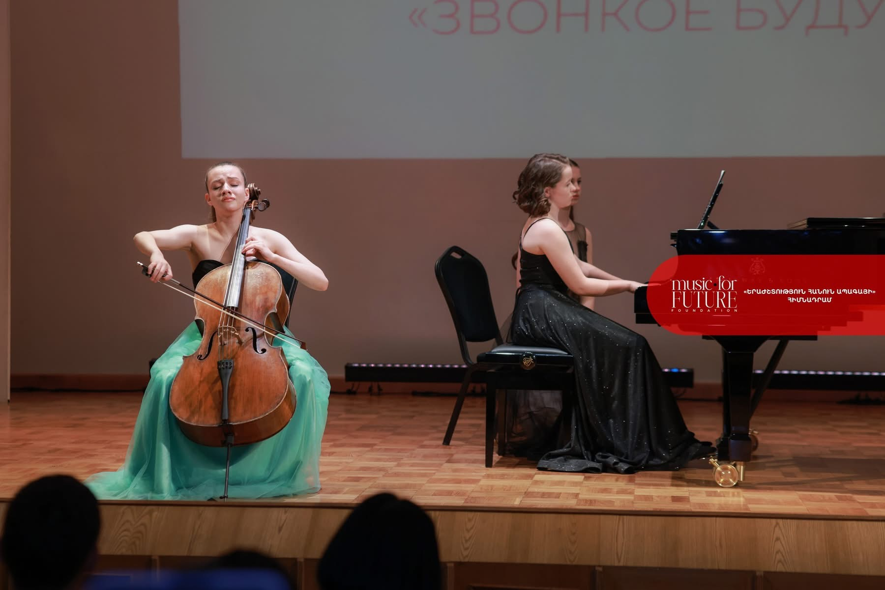 Многолетнее сотрудничество Фонда «Музыка во имя будущего» с Международным благотворительным фондом Владимира Спивакова стало прочным культурным мостом между юными исполнителями Армении и России. Многим из них это дало возможность выступать на престижных сценах и участвовать в международных проектах. Последним ярким свидетельством этого сотрудничества стал совместный концерт «Звонкое будущее», который состоялся недавно при поддержке Дома Москвы в Ереване. По приглашению Фонда «Музыка во имя будущего» талантливые воспитанницы Фонда Спивакова, ученицы Центральной музыкальной школы – Академии исполнительского искусства Москвы Екатерина Найденова, Мария Белокопытова и Эмели Асланова выступили с армянскими стипендиатами на сцене концертного зала им. Арно Бабаджаняна.