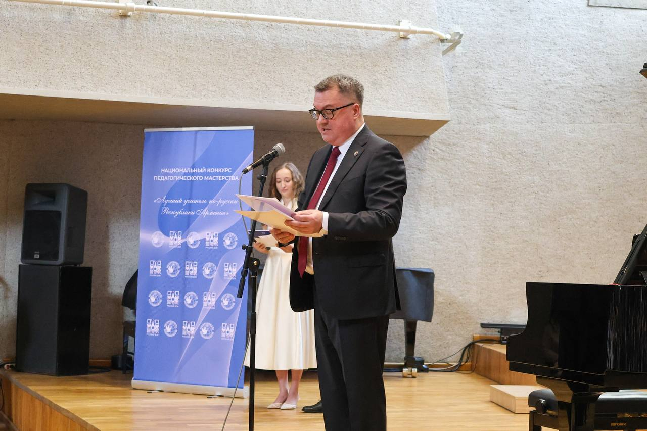 В столице Армении прошла церемония награждения лауреатов XVI Национального конкурса педагогического мастерства «Лучший учитель по-русски 2025 года Республики Армения». На мероприятии присутствовали также представители Дома Москвы в Ереване и других российских организаций.