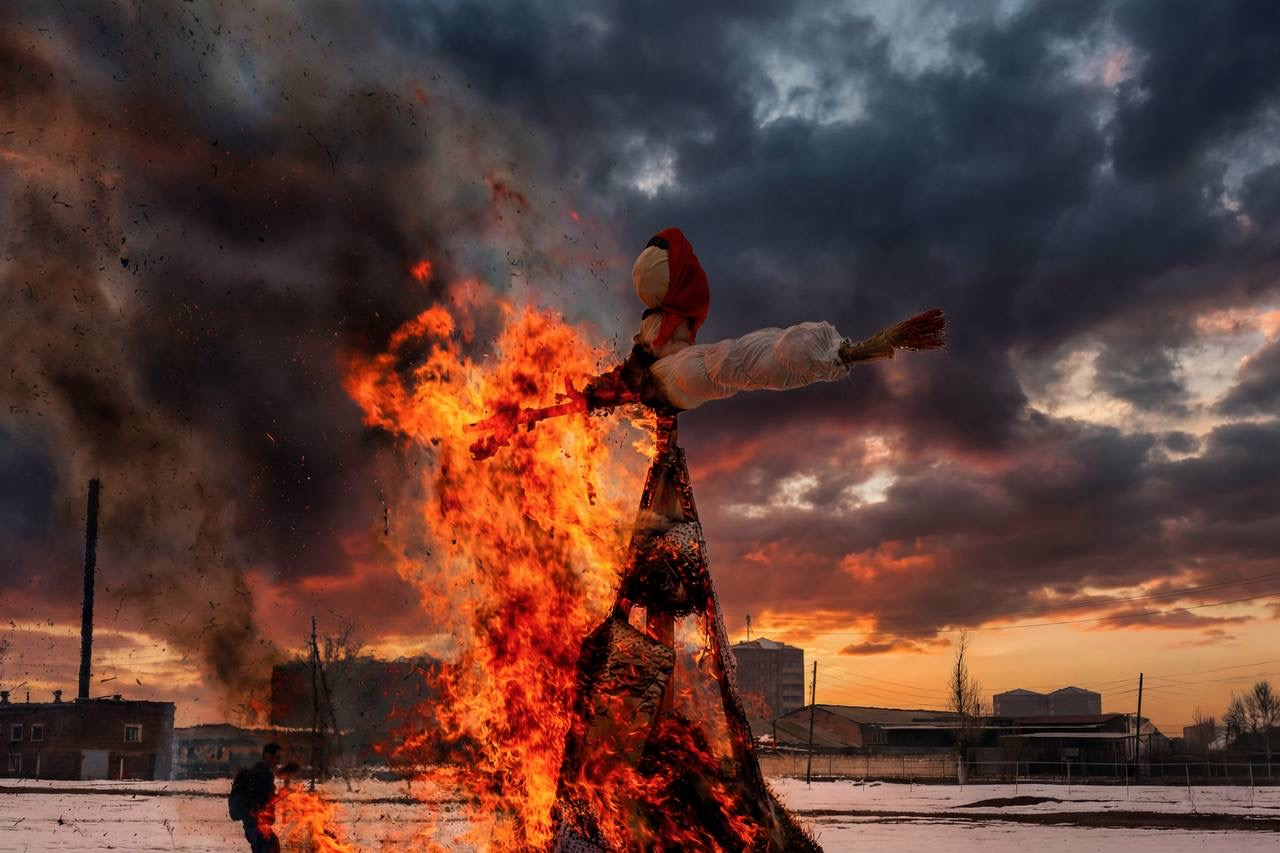 Гости праздника также угостились обильными масленичными вкусностями и разнообразными яствами. А в конце праздника они понаблюдали за традиционным сожжением чучела Зимы, символизирующем прощание с холодами, встречу тепла и солнца.